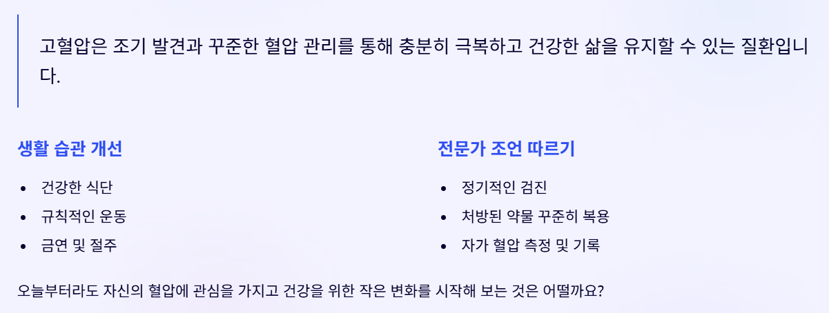 결론: 꾸준한 고혈압 관리가 건강한 삶의 시작입니다